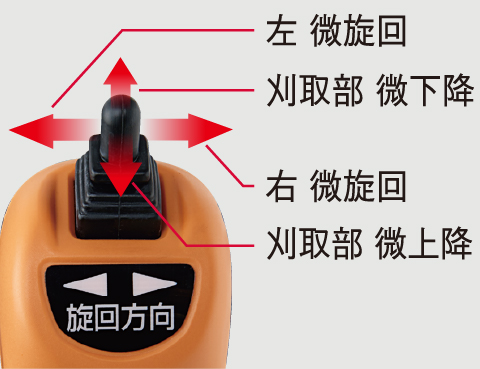 1本レバー仕様:刈取部の上下と機体の旋回がレバー1本で操作可能。フィットステアリングにより、指先だけで微妙な条合わせができます。