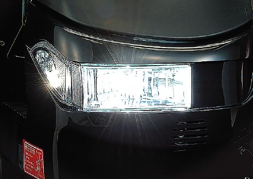 広範囲を照らして視認性をアップ。また、運転席サイドのライトが足元を見やすくします。