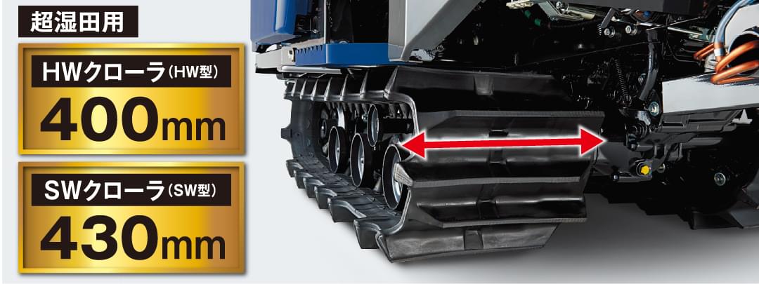 FK217・220・320 トップ 刈取・脱穀・排出 刈取 脱こく 排出 エンジン 操作性・快適性 使いやすさ 安全性 メンテナンス バリエーション 主要諸元 装備表 オプション カタログ バリエーション 乾田から湿田まで選べるクローラ 条件に合わせて、選べます。湿田でもけん引力を発揮し、力強く走行できます。 可動転輪 車への積み降ろしやあぜ越えも、急な姿勢変化がなくスムーズにできます。