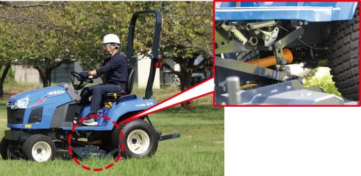 TXGS24に搭載しているHSTミッションは、反応が早くスムーズな走行を確保します。ペダルが前後進で分かれているので、安全、確実に操作することができます。