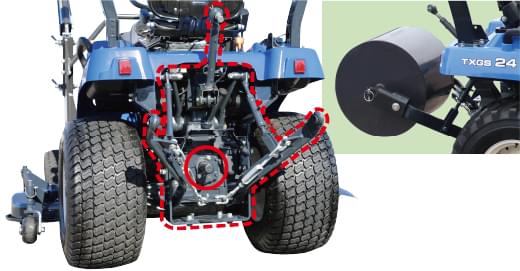 リアPTOとカテゴリ1対応のリア3点リンクを標準装備しています。カウンターウエイトの装着にも使用できます。
