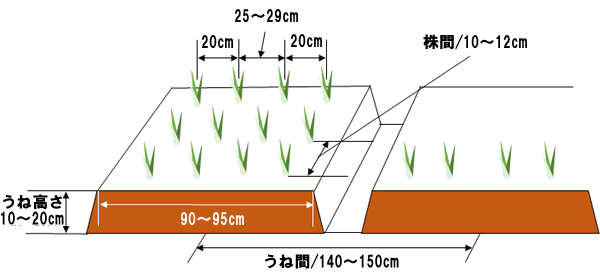 苗床・・・うね幅1.2~1.5m