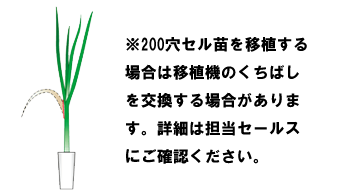 機械移植時は図のような苗を準備してください。育苗中は草丈が伸びると倒伏するため、倒伏する前に草丈約20cmに「葉切り」作業を行ってください。
