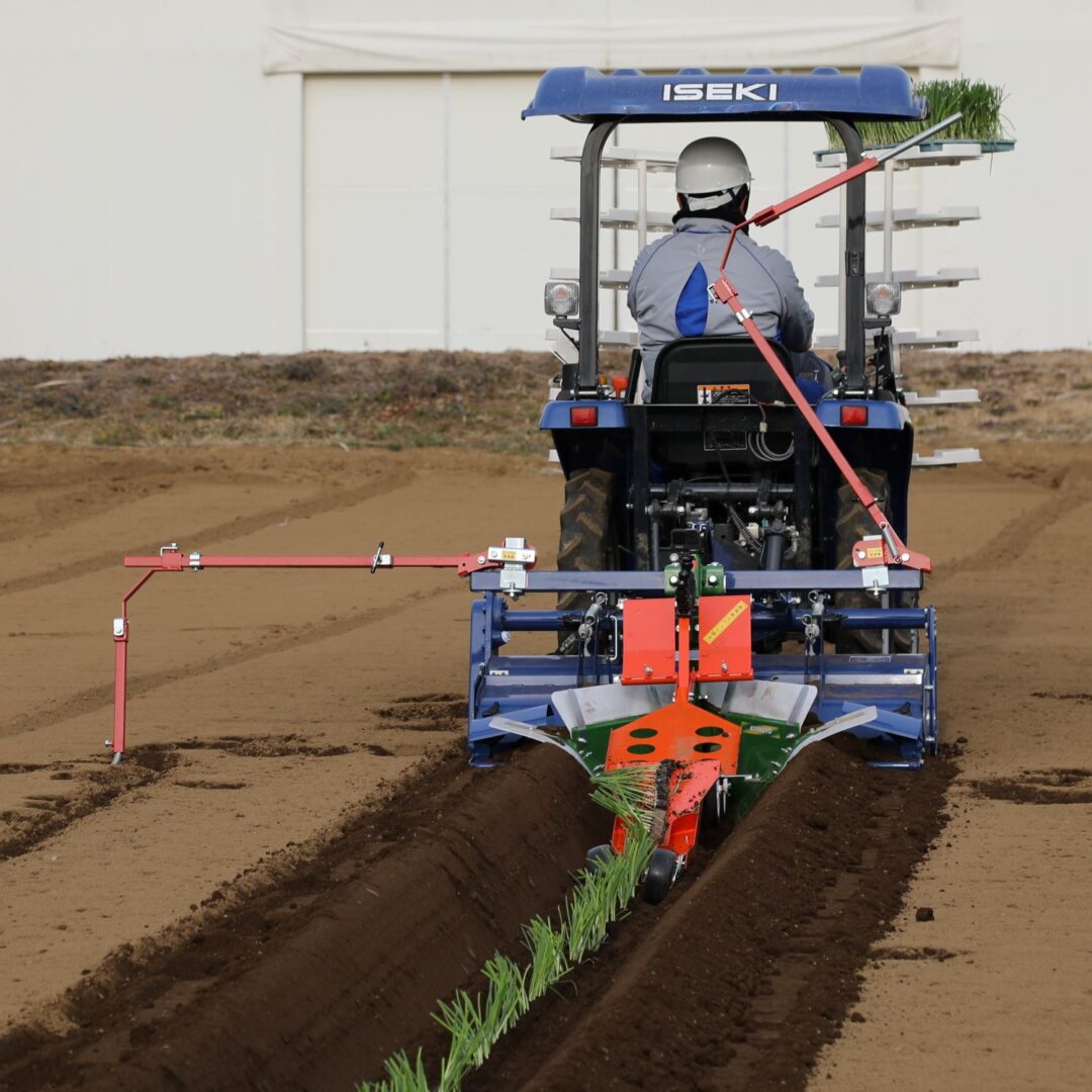 セルトレイで育てた苗を全自動野菜移植機で植付けします。