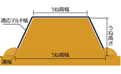| うねすそ幅 | うね高さ150mmの時 | 900~1200mm |