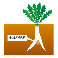 ダイコン栽培における耕うん作業は「だいこん十耕」といわれるくらい重要です。 細かく耕うんすることが土作りのポイントです。発芽して直根が伸びる時に未耕うんの状態で土塊や肥料に当たると又根になります。