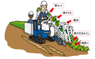 | 収穫、運搬 | ダイコン収集機+ リヤリフト(トラクタ) |