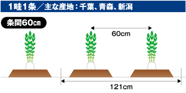 栽培体系(1うね1条、1うね2条など)に応じて機械を選択しましょう。