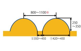 ※うねの条間は①うね裾幅+②溝幅で計算してください