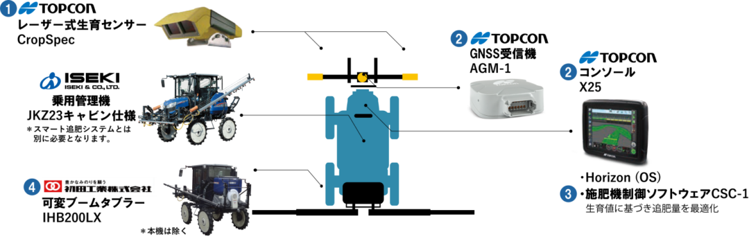 作物にレーザー光を照射して、生育状況をリアルタイムに計測する、画期的なセンサーです。GNSS自動操舵/ガイダンスシステム、可変施肥機と連動してリアルタイムで可変追肥を行うことができます。