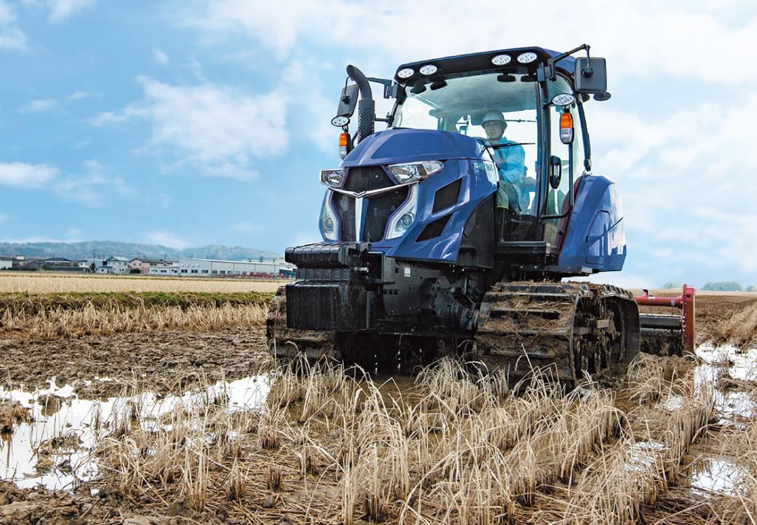 雨上がりで表面が滑りやすいほ場や、踏み固められた硬いほ場でもスリップしにくく、スムーズにけん引作業が行えます。