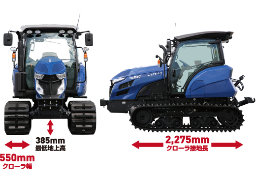 広いクローラ面がしっかりと地面に接地することで、優れたけん引力を発揮します。