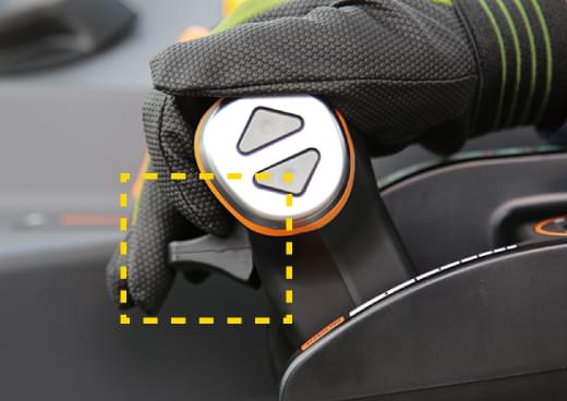 作業機の上げ下げがスイッチひとつでできます。2か所に配置しているので、作業姿勢に合わせて操作が可能です。